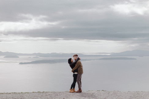 These two had a series of small celebrations for their actual wedding (one of which, I crashed with my camera), but this day was about getting 'wedding' portraits that felt true to them. They're big eaters - in a non-snooty way - and big hikers (but ones I can keep pace with), and share dozens of adventures of this sort. So their itinerary for this shoot was perfect. We started our day with a visit to a local farm for supplies, followed by a breathtaking hike near Deception State Park. The ever-changing weather only added to the come-what-may spirit of the hike.